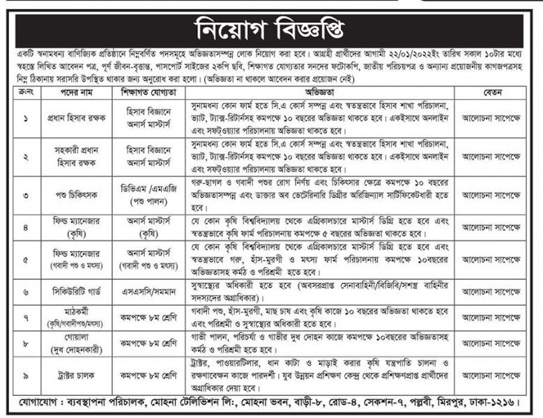 রাজধানীর একটি বাণিজ্যিক প্রতিষ্ঠানে বিভিন্ন পদে লোক নিয়োগ করা হবে। বিস্তারিত জানতে নিচের বিজ্ঞপ্তি দেখুন।