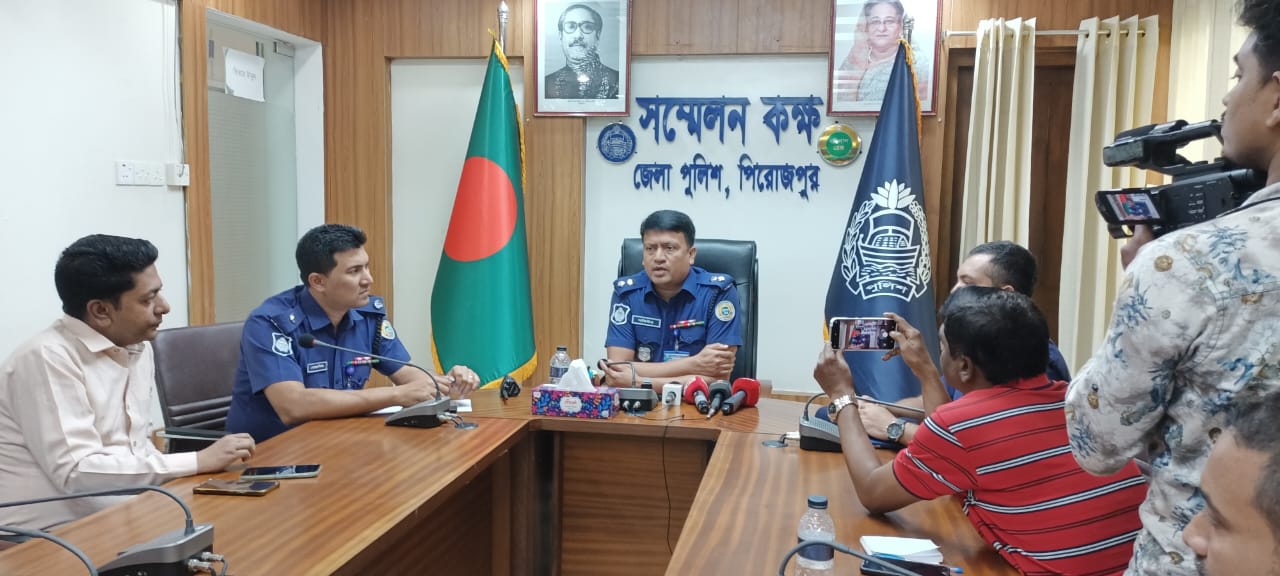 পিরোজপুরের মঠবাড়িয়ায় আসামী ছিনতাইয়ের ঘটনায় ২টি বিদেশী পিস্তল, ২টি ম্যাগাজিন, ১২ রাউন্ড গুলি ও ২টি ধারালো দেশী অস্ত্র সহ ১১ জন গ্রেফতার করেছে পুলিশ।