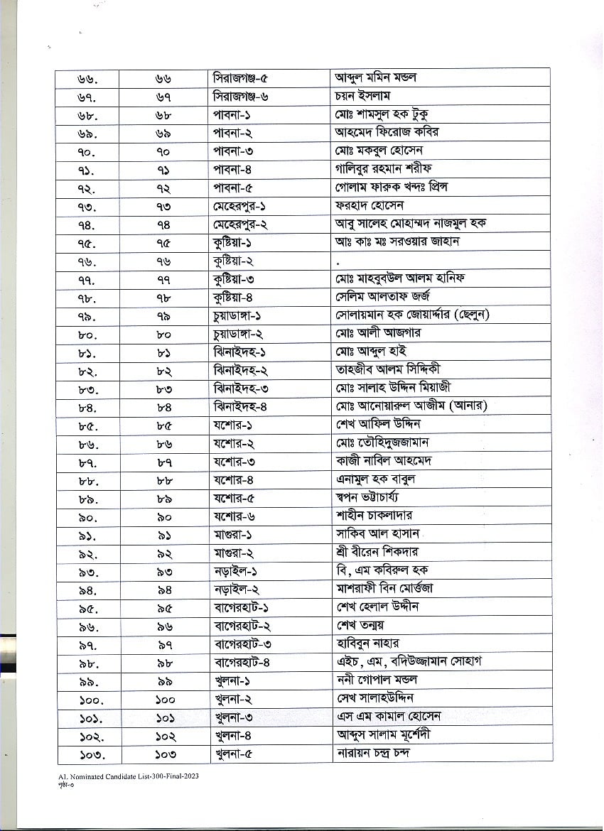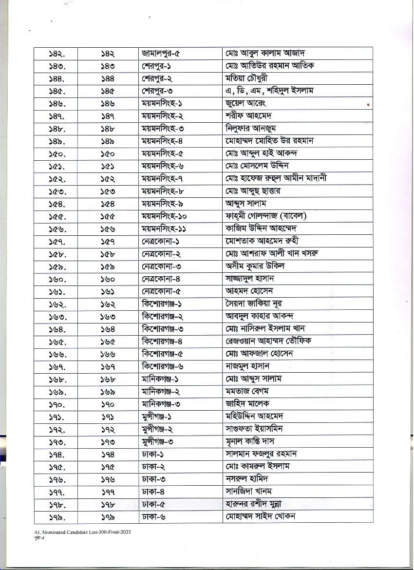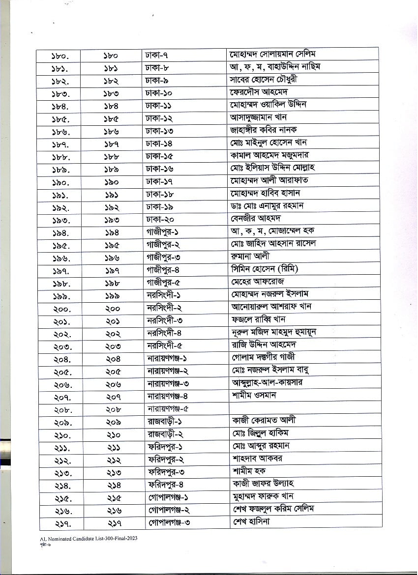 আসন্ন দ্বাদশ জাতীয় সংসদ নির্বাচনে ২৯৮টি আসনে চূড়ান্ত প্রার্থীর নাম ঘোষণা করেছে আওয়ামী লীগ। রোববার বিকেলে বঙ্গবন্ধু এভিনিউস্থ আওয়ামী লীগের কেন্দ্রীয় কার্যালয়ে দলের সাধারণ সম্পাদক ওবায়দুল কাদের দলীয় প্রার্থীদের নামের তালিকা ঘোষণা করেন।