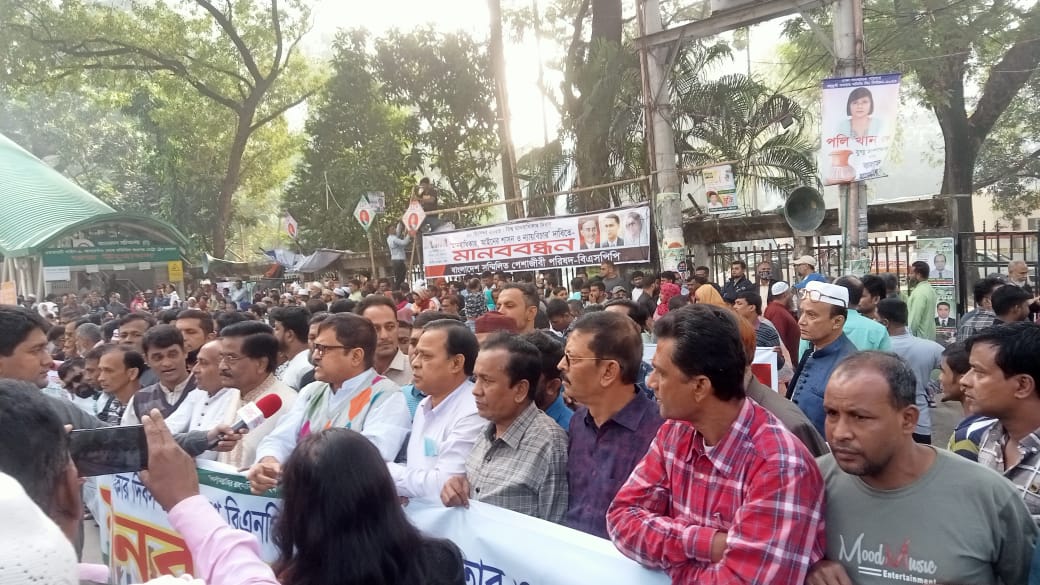 দীর্ঘদিন পর মাঠে নেমেছে বিএনপি। ১০ ডিসেম্বর আন্তর্জাতিক মানবাধিকার দিবস উপলক্ষ্য জাতীয় প্রেসক্লাবের সামনে মানববন্ধন আয়োজনের মধ্য দিয়ে ফের প্রকাশ্য রাজনীতিতে আসলেন দলটির নেতাকর্মীরা। বেলা ১১টায় এ মানববন্ধনের আয়োজন করা হলেও আগেই বহু নেতাকর্মী জড়ো হন সেখানে। তবে এতে দলটির শীর্ষ নেতাদের তেমন উপস্থিতি দেখা যায়নি। বিভিন্ন পেশাজীবী সংগঠনের নেতারাই অংশগ্রহণ করেন বেশি। বেলা ১১ টায় পবিত্র কোরআন তেলাওয়াতের মধ্য দিয়ে কর্মসূচি শুরু হয়। এতে সভাপতিত্ব করেন বিএনপির স্থায়ী কমিটির সদস্য সেলিমা রহমান। সারাদেশে জেলায় জেলায় একই কর্মসূচি পালন করবে দলটি।