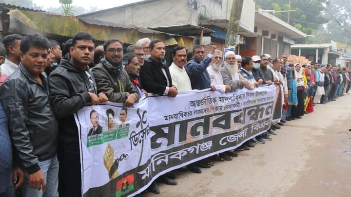 বিএনপি চেয়ারপারসনের উপদেষ্টা ও জেলা বিএনপি'র সভাপতি আফরোজা খান রিতার সার্বিক দিকনির্দেশনায় আন্তর্জাতিক মানবাধিকার দিবস উপলক্ষে মানববন্ধন কর্মসূচি পালন করেছে মানিকগঞ্জ জেলা বিএনপি।