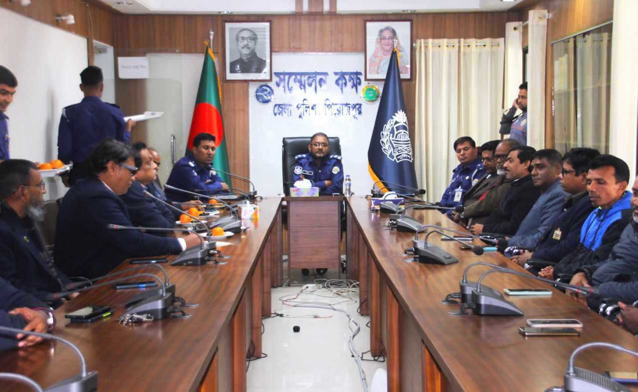 পিরোজপুর পুলিশ সুপার মুহাম্মদ শরীফুল ইসলাম পিপিএম এর সাথে পিরোজপুরে কর্মরত বিভিন্ন প্রিন্ট ও ইলেক্টনিক মিডিয়ার সাংবাদিকদের সাথে মতবিনিময় সভা অনুষ্ঠিত হয়েছে। রবিবার দুপুরে পিরোজপুর সুপারের কার্যালয়ের হলরুমে এ মতবিনিমিয় সভা অনুষ্ঠিত হয়।