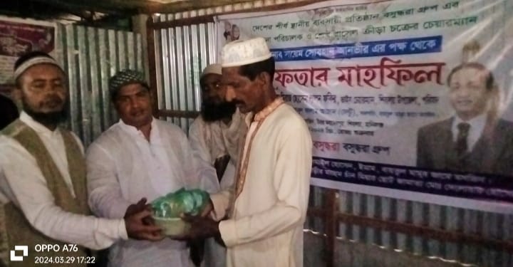 সমাজসেবক মোঃ দেলোয়ার হোসেনের সার্বিক ব্যবস্থাপনায় শতাধিক ধর্মপ্রাণ মুসল্লির মাঝে মানসম্মত ইফতার সামগ্রী বিতরণ ও ইফতার মাহফিলের আয়োজন করা হয়।