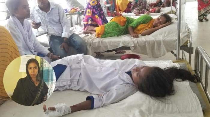 আহতদের মধ্যে উপজেলার জামালপুর ইউনিয়নের এনায়েতপুর গ্রামের রেজানুর রহমানের মেয়ে সেতু খাতুন (১৩), একই ইউনিয়নের চিকনী গ্রামের মিলন মিয়ার মেয়ে মিতু খাতুন (১৪) ও একই ইউনিয়নের আরজী জামালপুর গ্রামের গোলাম মোস্তফার মেয়ে রাবেয়া খাতুনকে (১৩) সাদুল্লাপুর উপজেলা স্বাস্থ্য কমপ্লেক্সে ভর্তি করা হয়েছে। এছাড়া আহত সুমনা ও তাপসীকে প্রাথমিক চিকিৎসা দেওয়া হয়েছে। এরা সকলেই ওই বিদ্যালয়ের ষষ্ঠ শ্রেণীর শিক্ষার্থী।