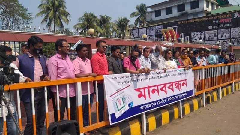 উক্ত মানববন্ধন কর্মসূচীতে ফেনীতে কর্মরত শতাধিক সাংবাদিক অংশ গ্রহণ করেন।