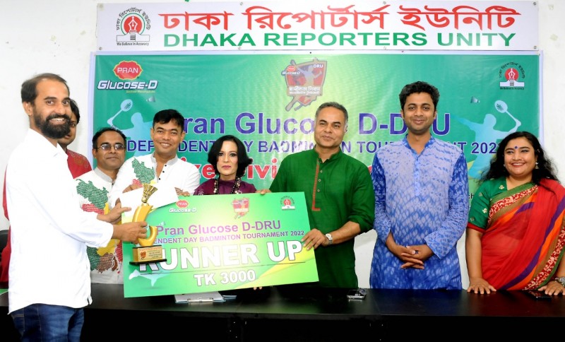 মহান স্বাধীনতা দিবস উপলক্ষ্যে ঢাকা রিপোর্টার্স ইউনিটি’র (ডিআরইউ) আয়োজনে প্রাণ গ্লুকোজ-ডি-ডিআরইউ স্বাধীনতা দিবস ব্যাডমিন্টন টুর্নামেন্ট এর বিজয়ীদের হাতে পুরস্কার তুলে দেয়া হয়েছে। শনিবার বিকালে ডিআরইউ নসরুল হামিদ মিলনায়তনে হাতে প্রাইজ মানি ও ট্রফি তুলে দেন ডিআরইউ সভাপতি নজরুল ইসলাম মিঠু ও সাধারণ সম্পাদক নূরুল ইসলাম হাসিব।