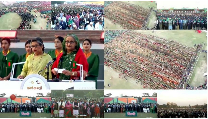 মহান বিজয়ের সুবর্ণজয়ন্তী এবং জাতির পিতা বঙ্গবন্ধু শেখ মুজিবুর রহমানের জন্ম শতবার্ষিকী উপলক্ষে আয়োজিত অনুষ্ঠানে প্রধানমন্ত্রী দেশবাসীকে এ শপথ বাক্য পাঠ করান। জাতীয় সংসদ ভবনের দক্ষিণ প্লাজায় এ অনুষ্ঠানের আয়োজন করা হয়। এসময় দেশের বিভাগীয় শহরগুলোসহ তৃণমূল পর্যন্ত সর্বস্তরের দেশবাসী সোশাল মিডিয়া, টেলিভিশন এবং অনলাইনে ভার্চুয়ালি সংযুক্ত ছিলেন।