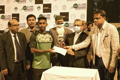 পরে, মন্ত্রী বিজয়ী খেলোয়ারদের মাঝে পুরস্কার বিতরণ করেন।