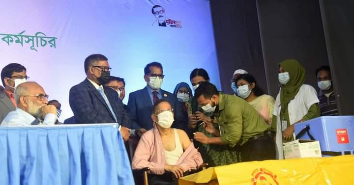 অনুষ্ঠানে সবার আগে বুস্টার ডোজের টিকা নেন দেশে প্রথম টিকা নেওয়া কুর্মিটোলা জেনারেল হাসপাতালের সিনিয়র স্টাফ নার্স রুনু বেরুনিকা কস্তা। এরপর স্বাস্থ্য অধিদফতরের মহাপরিচালক অধ্যাপক ডা. এবিএম খুরশীদ আলম, পররাষ্ট্রমন্ত্রী ড. এ কে আব্দুল মোমেন, আইনমন্ত্রী এডভোকেট আনিসুল হক, মৎস্য ও প্রাণিসম্পদ মন্ত্রী শ ম রেজাউল করিম, ডাক ও টেলিযোগাযোগ মন্ত্রী মোস্তাফা জব্বার, জাতীয় অধ্যাপক প্রফেসর ডা. শায়লা খাতুন এবং স্বাস্থ্য ও পরিবার কল্যাণ মন্ত্রী জাহিদ মালেক বুস্টার ডোজ টিকা নেন।