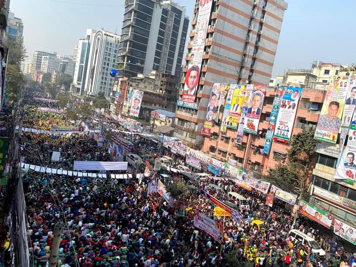 নেতা-কর্মীদের ভিড় একপাশে ফকিরাপুল ছাড়িয়ে দৈনিক বাংলা মোড়, আরেকপাশে কাকরাইলের নাইটিঙ্গেল মোড় ছাড়িয়ে যায়। সড়কের একপাশে অবস্থান নেওয়ার কথা থাকলেও নেতাকর্মীদের ভিড়ে সড়কের দুই পাশের যানবাহন চলাচল বন্ধ হয়ে যায়।
