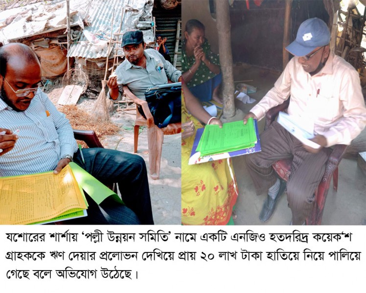 যে ব্যক্তি পাঁচ হাজার টাকা দেবেন তাকে ৫০ হাজার টাকা ঋণ, যিনি ১০ হাজার দেবেন তাকে এক লাখ ও ২০ হাজার টাকা দিলে দুই লাখ টাকা ঋণ দেওয়া হবে। এই প্রলোভনে পড়ে শার্শা ও ঝিকরগাছা উপজেলার বিভিন্ন ইউনিয়নের প্রায় ২০০ মানুষ আজ পথে বসেছে।