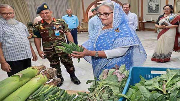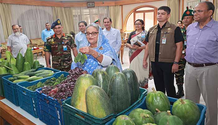 ভিডিওতে দেখা যায়, লাউ, করলা, কচু, ঢেঁড়স, কচুর লতি, শসা, পাট শাক, ডাঁটা, মিষ্টিকুমড়া, লাল শাক ও পুঁই শাকসহ বিভিন্ন সবজি রয়েছে। প্রধানমন্ত্রী শেখ হাসিনা এ সময় বিভিন্ন সবজি হাতে নিয়ে ছবি তোলেন ও সবজিগুলো পরিদর্শন করেন।