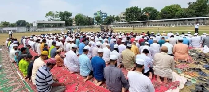 রহমতের বৃষ্টির জন্য চোখের জল ফেলে সালাতুল ইসতিসকার আদায় করেছেন মানিকগঞ্জের ধর্মপ্রাণ মুসল্লিরা। শনিবার (২৭ এপ্রিল) সকাল ১০টায় জেলা শহরের শহিদ মিরাজ তপন স্টেডিয়ামে বৃষ্টি প্রার্থনায় বিশেষ এই সালাত আদায় করা হয়। ইমাম মোয়াজ্জিন পরিষদ কর্তৃক আয়োজিত সালাতুল ইসতিসকারে জেলা শহর, দক্ষিণ সেওতা, বান্দুটিয়া, বেউথা, পশ্চিম দাশড়া, পৌলী, আন্ধার মানিকসহ আশপাশের শত শত মুসল্লী এবং মাদ্রাসা শিক্ষার্থীগন শরিক হন। নামাজ শেষে দু'হাত তুলে বৃষ্টির জন্য আল্লাহর কাছে ফরিয়াদ করেন মুসল্লিরা। দক্ষিণ সেওতা এলাকার বাসিন্দা