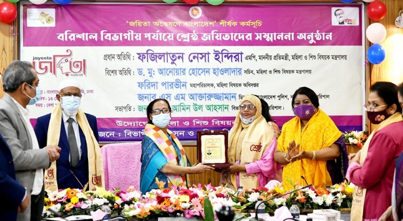 শ্রেষ্ঠ জয়িতা হিসেবে নির্বাচিত হলেন বরিশাল এবং চট্রগ্রাম বিভাগের পাচজন করে মোট দশজন আত্মপ্রত্যয়ী এবং সংগ্রামী নারী। মহিলা ও শিশু বিষয়ক প্রতিমন্ত্রী ফজিলাতুন নেসা ইন্দিরা রোববার (১৩ ফেব্রুয়ারি) সকালে ঢাকায় বাংলাদেশ শিশু একাডেমির সভাক্ষ থেকে অনলাইনে বরিশাল বিভাগের শ্রেষ্ঠ জয়িতাদের সম্মাননা প্রদান অনুষ্ঠানে প্রধান অতিথি হিসেবে যোগদান করেন।
