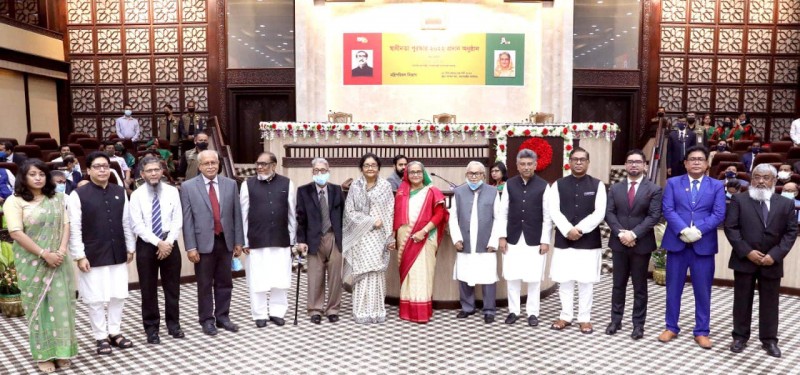 প্রধানমন্ত্রী বলেন, ’৯৬ সালে দীর্ঘ ২১ বছর পর আওয়ামী লীগ সরকার গঠনের পর থেকেই সে ইতিহাসকে আবার ফিরিয়ে আনার চেষ্টা করে। জাতির পিতার ঐতিহাসিক ৭ মার্চের ভাষণ, যে ভাষণ দেশে বাজানো নিষিদ্ধ ছিল তা বিশ^ ঐতিহ্যের প্রামাণ্য দলিলে স্থান করে নেয়। যে ‘জয় বাংলা’ শ্লোগান দিয়ে মুক্তিযোদ্ধারা অকাতরে জীবন বিলিয়ে দিয়েছেন তাকে আবার ফিরিয়ে আনে। দেশকে খাদ্যে স্বয়ংসম্পূর্ণ করার সঙ্গে সঙ্গে জনগণের পুষ্টি চাহিদা পূরণের পদক্ষেপ গ্রহণ করে এবং তথ্য-প্রযুক্তিতে সমৃদ্ধ করে ডিজিটালাইজড করার পাশাপাশি আজকে শতভাগ বিদ্যুতায়নের মাধ্যমে প্রত্যেক ঘরে বিদ্যুতের আলো জ¦ালাতে আমাদের সরকার সক্ষম হয়েছে।