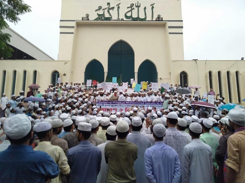ভারতে মহানবী (সা.) ও হযরত আয়েশা (রা.)-এর অবমাননার প্রতিবাদে রাজধানী ঢাকায় সমাবেশ ও বিক্ষোভ মিছিল করেছে ইসলামী ঐক্যজোট। আজ বৃহস্পতিবার বাদ যোহর বায়তুল মোকাররম জাতীয় মসজিদের উত্তর গেইটে প্রতিবাদ সমাবেশ অনুষ্ঠিত হয়।