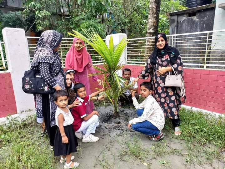 পরে বিদ্যালয়ের আঙ্গিনায় গাছের চারা রোপন করা হয় এবং সকল শিক্ষার্থীদেরকে গাছের চারা বিতরণ করা হয়।