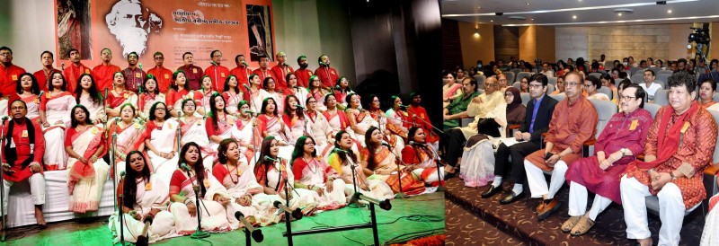 উল্লেখ্য, সমবেত কণ্ঠে জাতীয় সংগীত পরিবেশনার মধ্য দিয়ে অনুষ্ঠানের সূচনা হয়। 'ও আমার দেশের মাটি তোমার পরে ঠেকাই মাথা', 'তোমার সুরের ধারা ঝরে যেথায় তারই পারে' সহ বিভিন্ন হৃদয়গ্রাহী ও মনোমুগ্ধকর সংগীত পরিবেশনার মধ্য দিয়ে আন্তর্জাতিক মাতৃভাষা ইনস্টিটিউটের মিলনায়তনকে সুরের মূর্ছনায় মাতিয়ে রাখেন দেশবরেণ্য রবীন্দ্রসংগীত শিল্পীগণ।