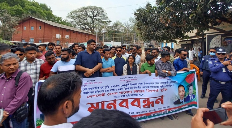 জেলা বিএনপির যুগ্ম আহবায়ক রেজাউল করিম পিন্টুর সঞ্চালনায় মানববন্ধনে আরও উপস্থিত ছিলেন রাজবাড়ী জেলা ছাত্রদলের আহবায়ক মোঃ আরিফুল ইসলাম (রোমান)।